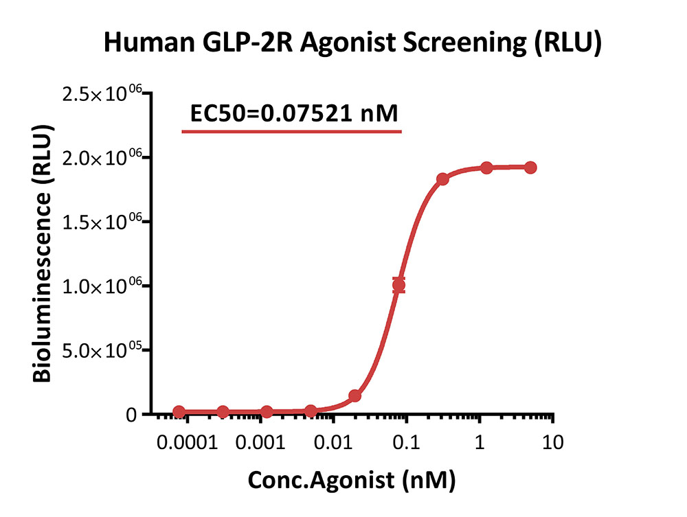 This reporter cell was incubated with serial dilutions of human GLP-2R agonist. The EC50 of human GLP-2R agonist (Glepaglutide) was approximately 0.07521 nMProtocol