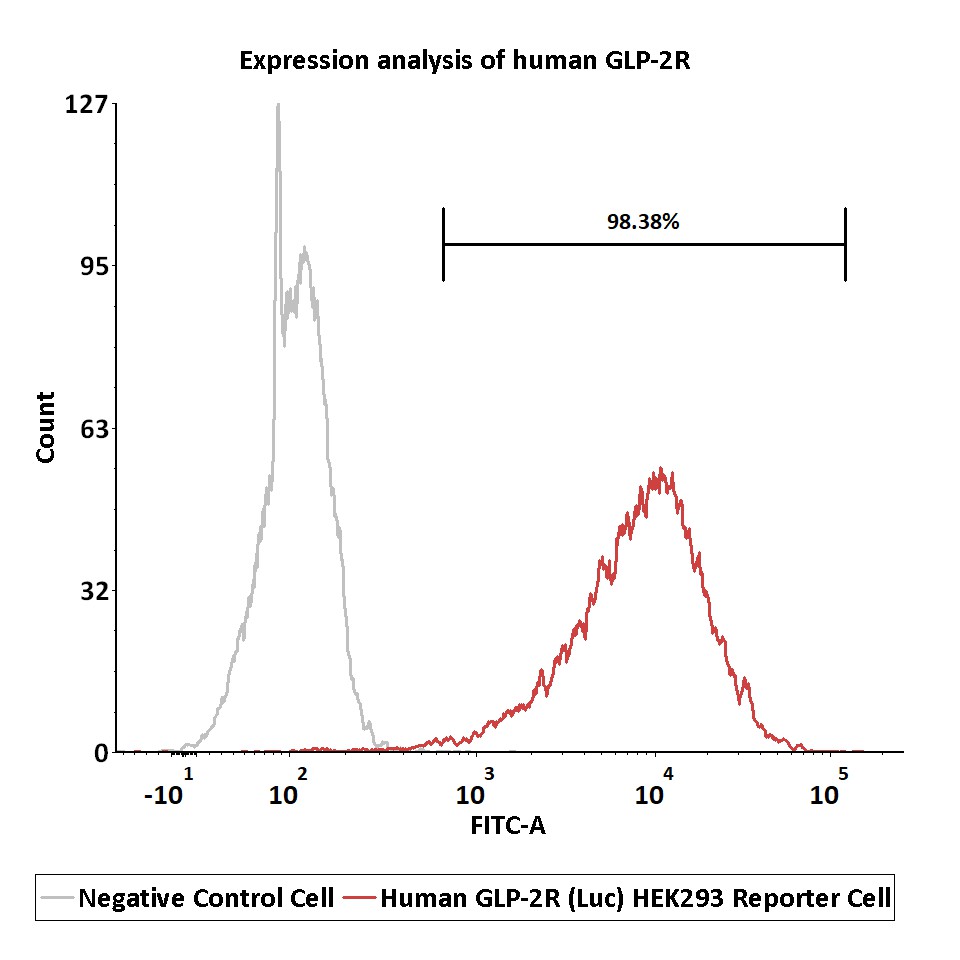 Expression analysis of human GLP-2R on Human GLP-2R (Luc) HEK293 Reporter Cell by FACS.